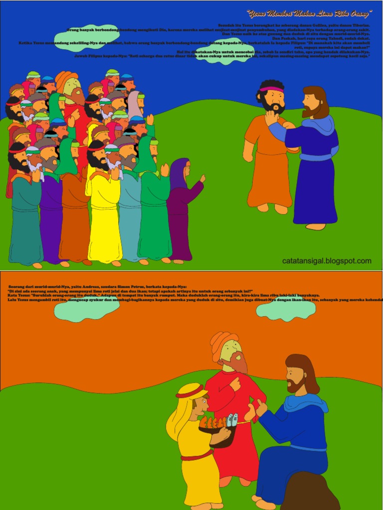 Demikian sajian kami, semoga bermanfaat dan salam mewarnai gambar sambil belajar gambar cerita. Mungkin beberapa dari kalian sudah ga asing lagi dengan kisah 5 roti dan 2 ikan.